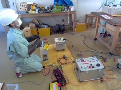 授業では、「電気工作物の保安と電気安全」や「電気工作物の各種試験と測定」について、講義と実習を交えながらご指導いただきました。実習では、漏電遮断器の復旧方法や保護継電器の動作確認、絶縁抵抗測定など、普段の授業ではなかなか体験できない専門的な内容に、生徒たちは真剣に取り組んでいました。