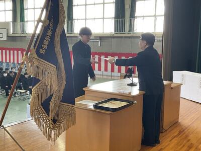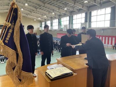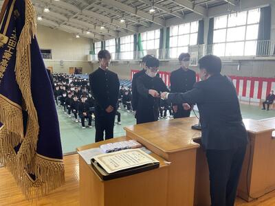 部活動での活躍をはじめ、工業の専門分野における技術や知識を生かした発表大会や競技大会など、多方面にわたる成果が紹介され、生徒一人一人の努力の積み重ねが感じられる式となりました。